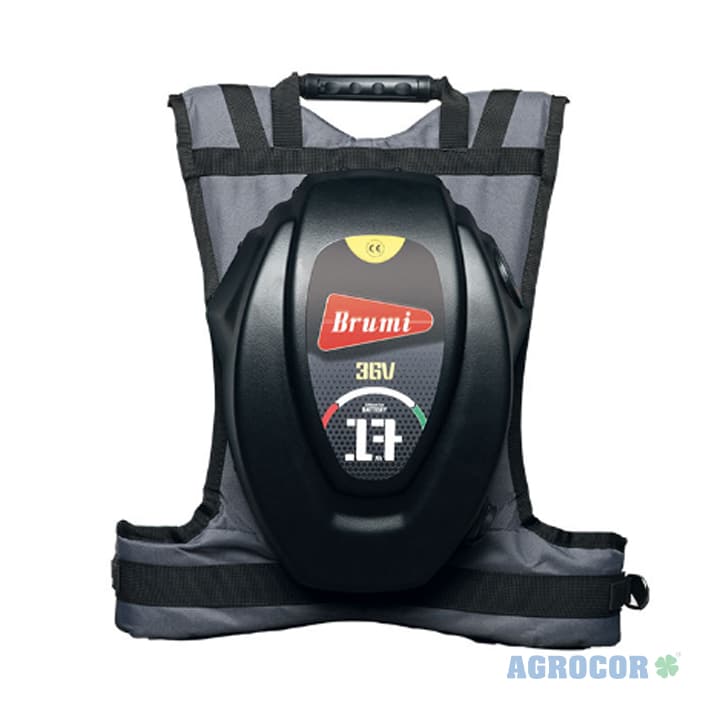 La Batería de litio 36V 10 Ah Brumi de mochila alimenta los vareadores electrónicos optimizando al máximo los tiempos de cosecha.