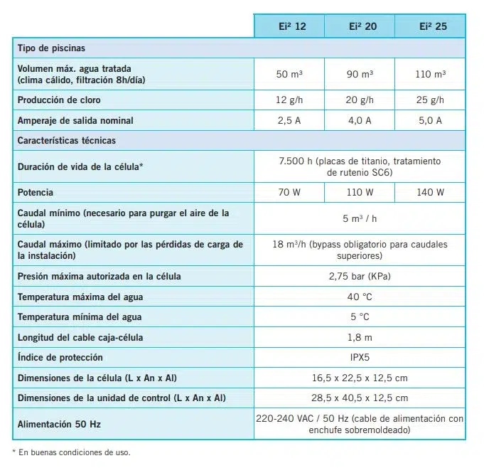 Características del Clorador salino ZODIAC Ei² 12