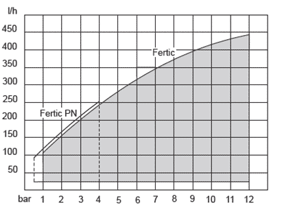 – Caudal de inyeccion: 25 – 500 l/h (segun curva)
