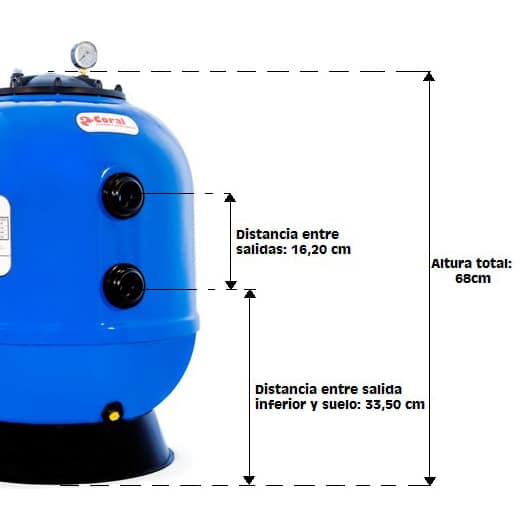 - Tipo de medio filtrante: Puedes elegir entre arena, vidrio o otros medios filtrantes.
