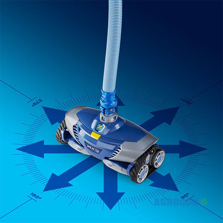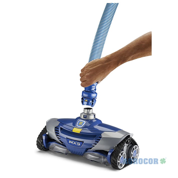 El limpiafondos automático hidráulico MX 9 de Zodiac está perfectamente adaptado para la limpieza de piscinas más pequeñas y de piscinas sobre elevadas. Además se conecta al circuito de filtración y es más asequible, ofreciendo una gran calidad de limpieza. Es la solución adecuada para cualquier tipo de fondo y forma de piscina.