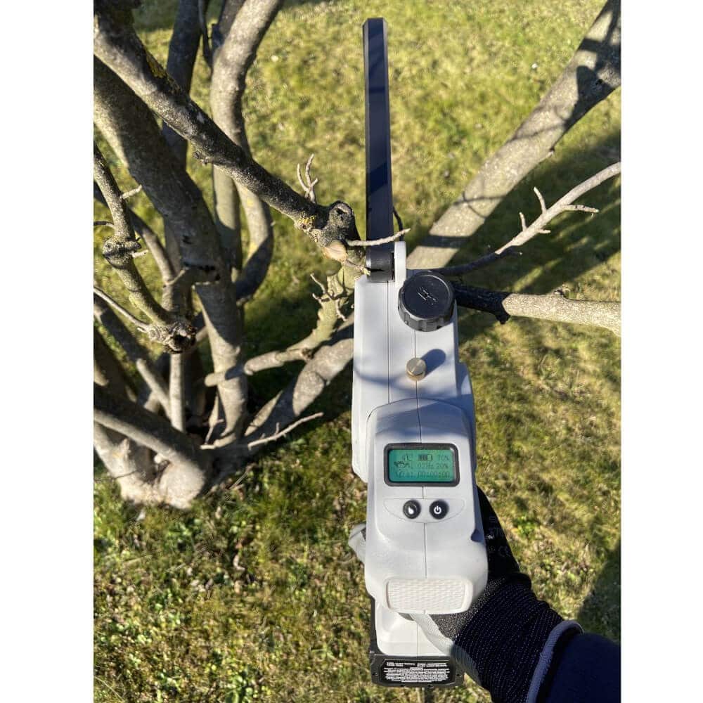 La espada de 6 pulgadas (15,24 cm) con cadena de paso ¼” proporciona la capacidad de corte adecuada para las ramas más frecuentes en olivar adulto, viñedo en vaso y frutales de hueso: hasta 160 mm de diámetro. La velocidad de cadena de hasta 10 m/s garantiza cortes rápidos y limpios que protegen la salud de la planta.