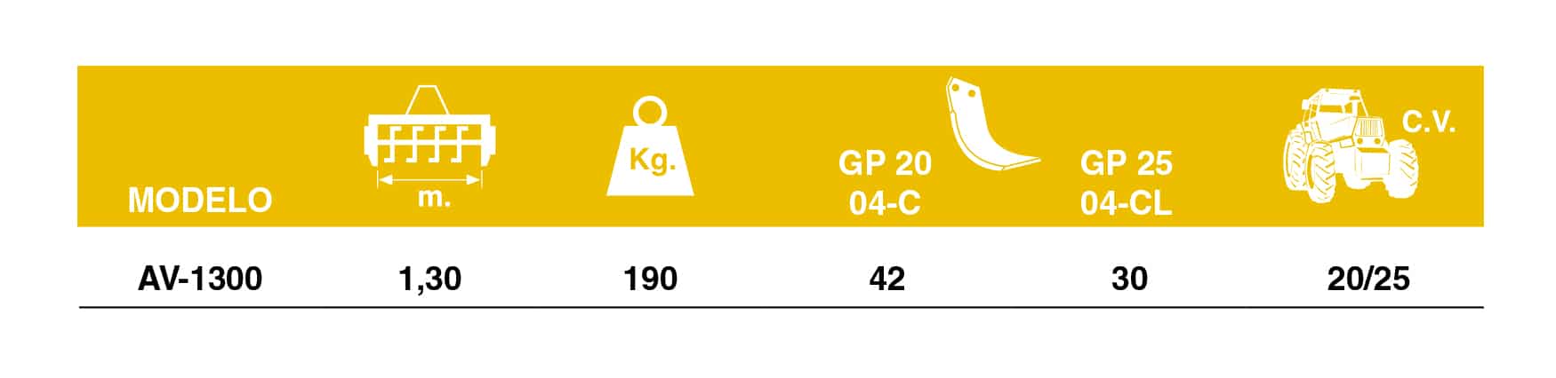 - Anchura de trabajo: 1,30 m, ideal para parcelas de tamaño medio.