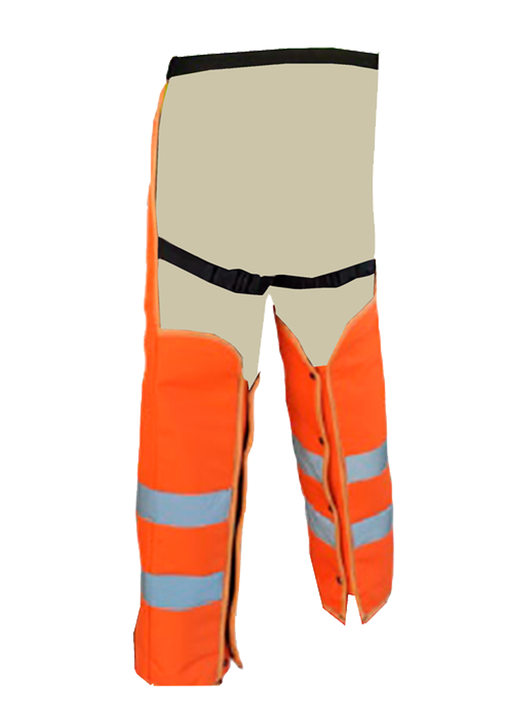 Posicionamiento correcto: Ajuste las cinchas de manera que el zahón cubra desde la parte superior del muslo hasta el inicio de la bota de seguridad, asegurando que no queden zonas expuestas.